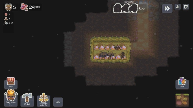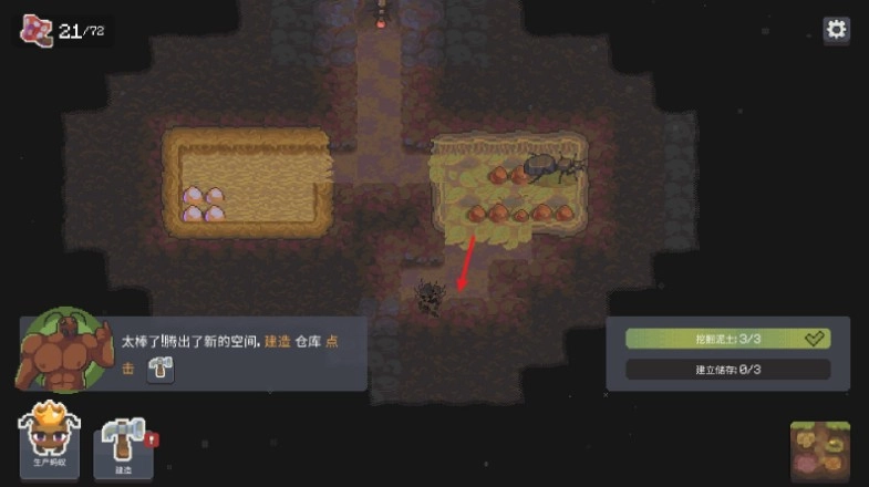 3. 要是蚂蚁数量过多,玩家就得点击此键来扩大自身的蚁巢。