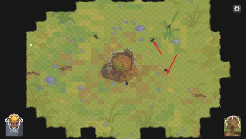 1.点击左下角的生产蚂蚁即可生成各种不同类型的蚂蚁。