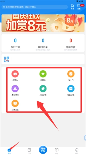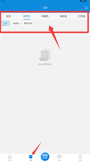 3、登录成功后进入首页,可见待预约、待服务等各类订单功能入口。