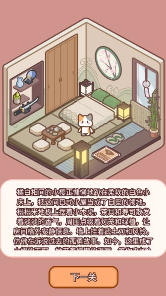 喵居物语,这是一款围绕猫咪展开的休闲布置类游戏。在游戏关卡里,玩家要把各种各样的家具和萌趣可爱的猫咪,巧妙地放置在房间之中。当所有物品都摆放妥当,就算顺利通关啦。游戏有着无时间限制的轻松设定,能让你在宁静的氛围里自由发挥创意,精心打造出温馨的喵居小窝。而且游戏操作十分简单,喜爱这类游戏的小伙伴们,赶快前来体验一番吧!