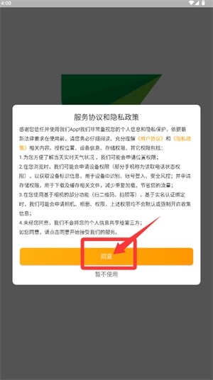 1、首先在用户协议与隐私声明窗口内,点击同意选项继续操作。