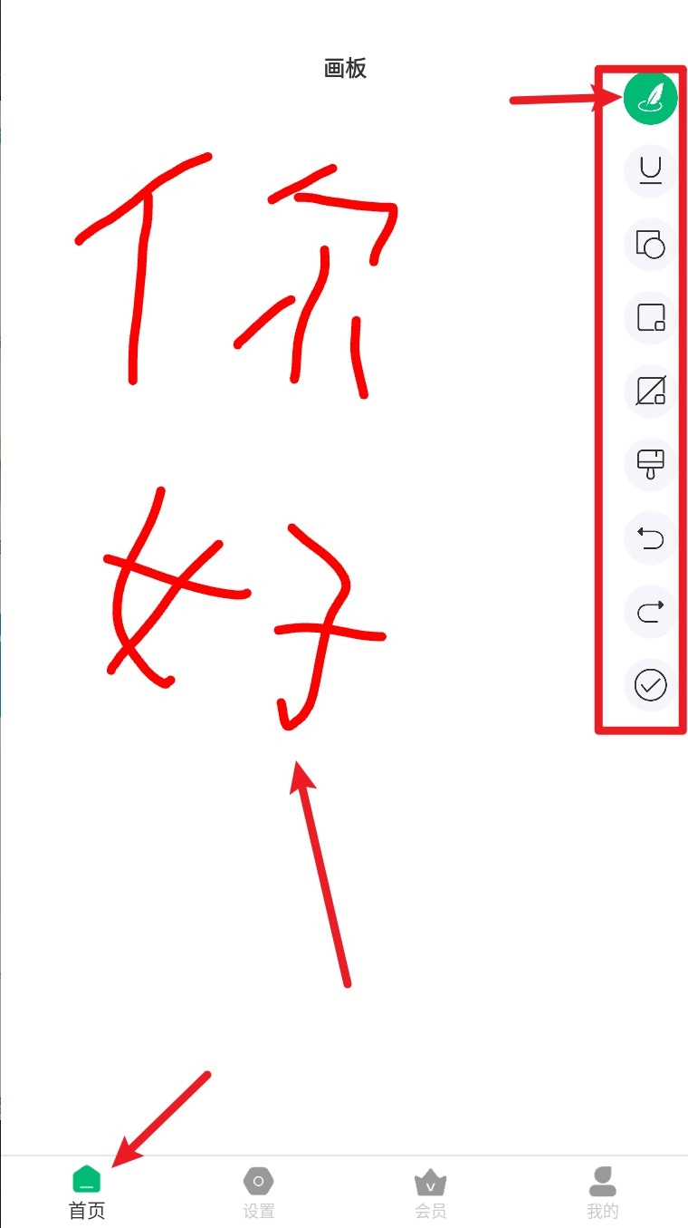 1. 打开 App 并点击底部导航栏的「首页」,进入画板主界面开始手写或绘图标注。