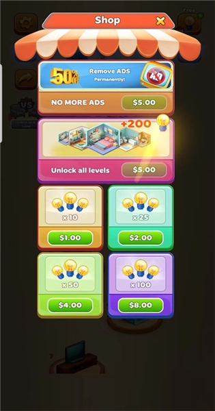 布置你的梦想房间版是该游戏的版本,此版本为玩家去除了广告,玩家无需观看广告就能直接获取奖励,同时还具备商店免费购买功能。这是一款休闲模拟类游戏,玩家在游戏里要对房间进行布置、整理与匹配,特别适合有强迫症的玩家。你需要将散乱的物品归纳整理好,解开一个个改造谜题,打造出理想的室内空间。