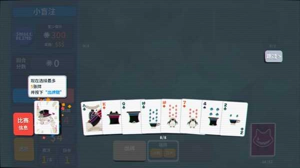 玩家一开始就携带一副包含52张扑克牌的牌组,手中一直保持8张牌。每当出牌或者弃牌后,牌会自动补充至8张,不过出牌和弃牌的次数都存在一定限制。