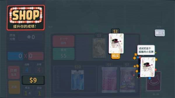 除常规标准游戏牌外,小丑牌、塔罗牌、天体牌、幻灵牌等卡牌或道具也能提供增益,助力玩家更高效、更多地获取筹码。每局游戏结束,玩家可在商店购买随机刷新的小丑牌、塔罗牌、星球牌、幻灵牌、优惠券及各类卡包。