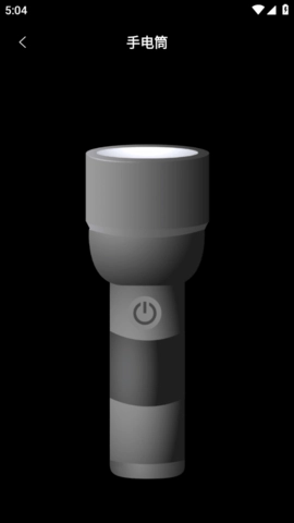 2、点击手电筒,便会切换到手电筒界面,点击中间的按钮,手机手电筒就会被打开
