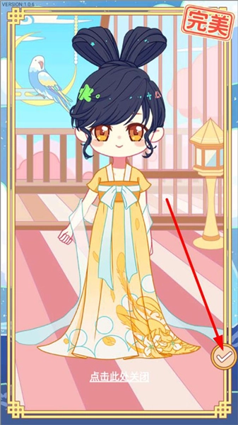 3、来到服装搭配展示阶段,玩家能够观看到服装的整体造型,点击右侧的“√”就能完成保存。