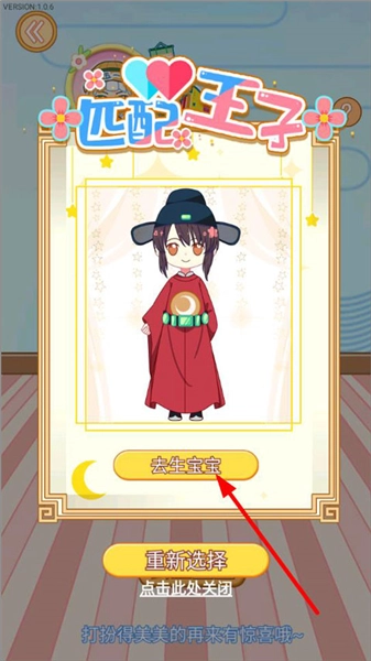 3、若要体验生宝宝,需匹配一位王子。系统将随机为您挑选一位王子,与您共同开启生宝宝体验。待王子选定后,点击“去生宝宝”按钮即可。