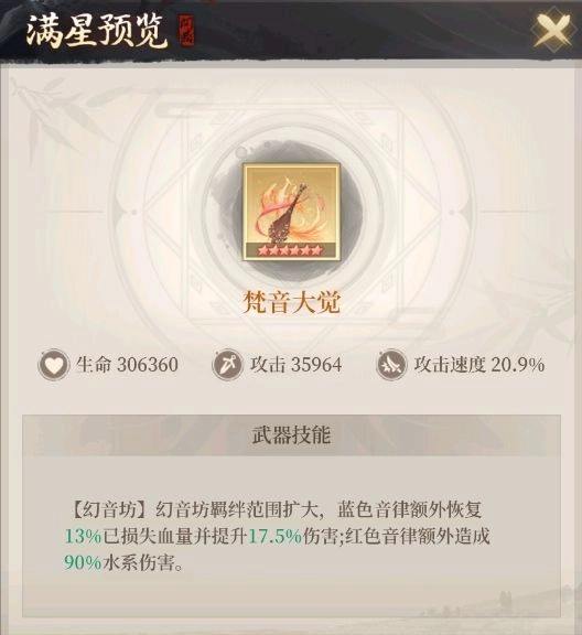 梵音天:必杀技【妆台秋思】能提供强力群控,可以专门强化控制能力,武器推荐【砸婿球】,搭配绝招,可以实现双重控制。