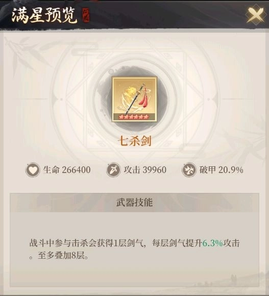 注意!这套阵容在前期有点弱势。因为6气宗羁绊的效果是提升技能伤害(气宗侠客每释放1次必杀技,能叠加1层buff,提升30%的攻击力,最多能叠加10层),而技能需要升星才能提升伤害,解锁特殊效果,所以前期侠客没养起来,星级不够高的时候玩起来比较难受,但只要撑过前期,战斗力就会直线飙升。既可以出其不意一招制敌,又能靠叠加buff在持久战里,绝对是物超所值,值得投资。
