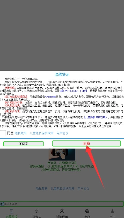 1. 开启监控大师,若为首次使用,需点击同意隐私政策,并授予必要权限。