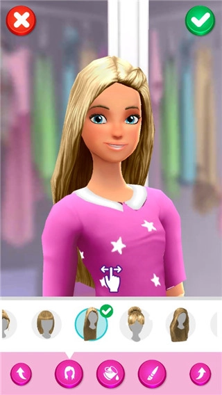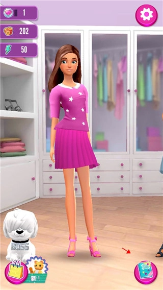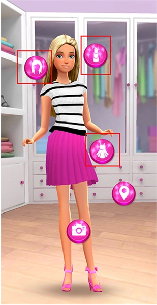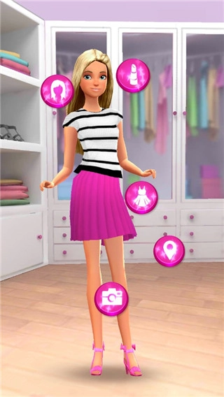 芭比时尚衣橱完整版,这是一款3D模拟换装的休闲益智游戏。玩家在游戏里,能够自由挑选一个角色,为其精心装扮,塑造出独一无二的造型。游戏内有数百种服装供玩家依据自身审美喜好来选择。除了服装,脸部模具、妆容、背景以及贴纸等装饰也一应俱全。待这些全部完成后,玩家就能亲自为角色拍摄美美的照片,并且还能保存下来。快来打造专属于你的芭比形象吧。