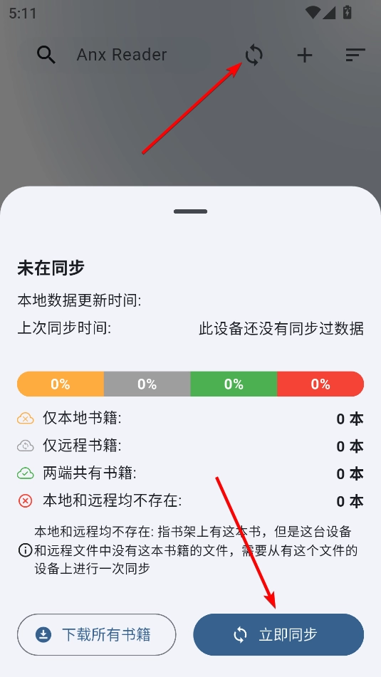 5.设置好webdev,进入书架界面,点击上方的循环按钮即可手动同步