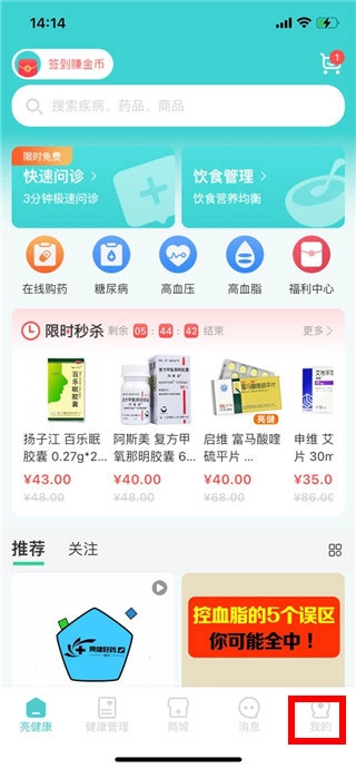 1. 开启亮健康App,轻点底部菜单栏里的“我的”。