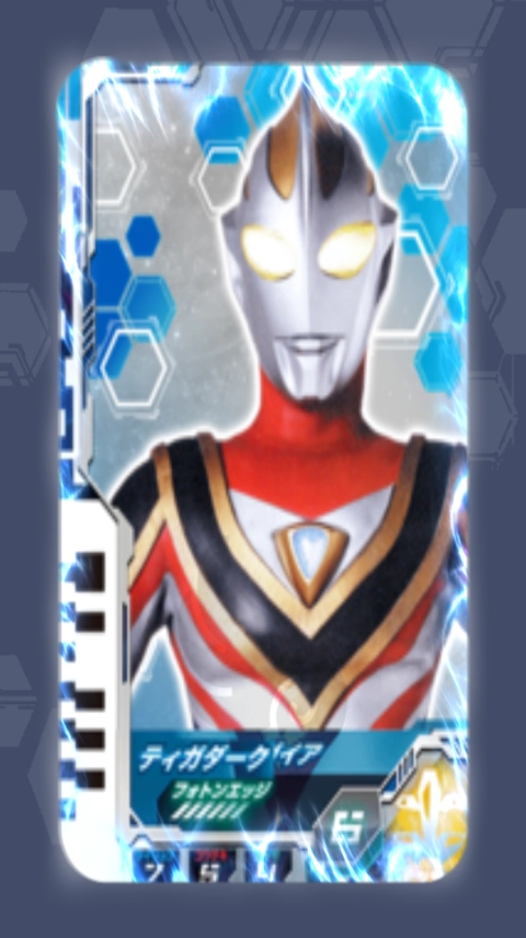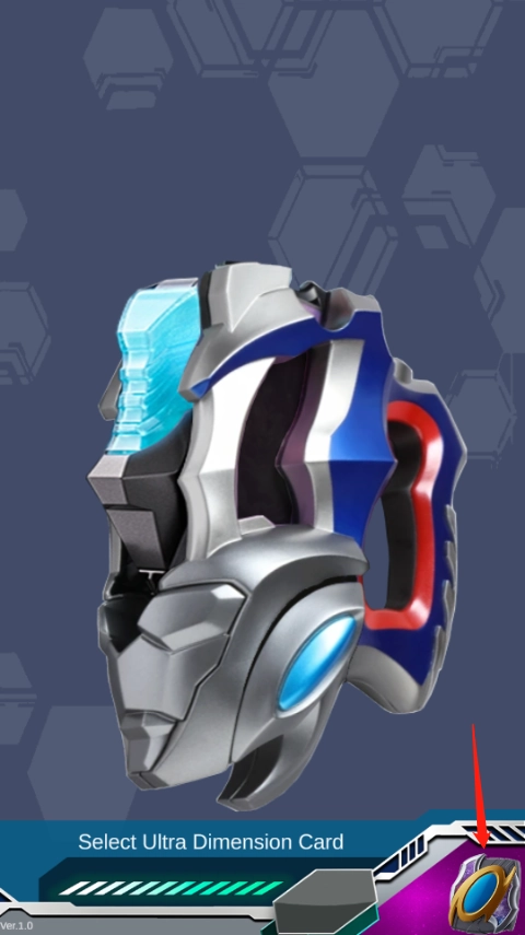 1、进入游戏你会看见整个屏幕都被奥特D闪光剑给霸占了,想要变身就先点击右下角闪烁的奥特次元卡盒。
