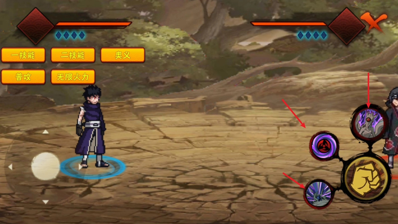 3、右侧是三个技能键,下方的两个为小技能,最上面的则是奥义。