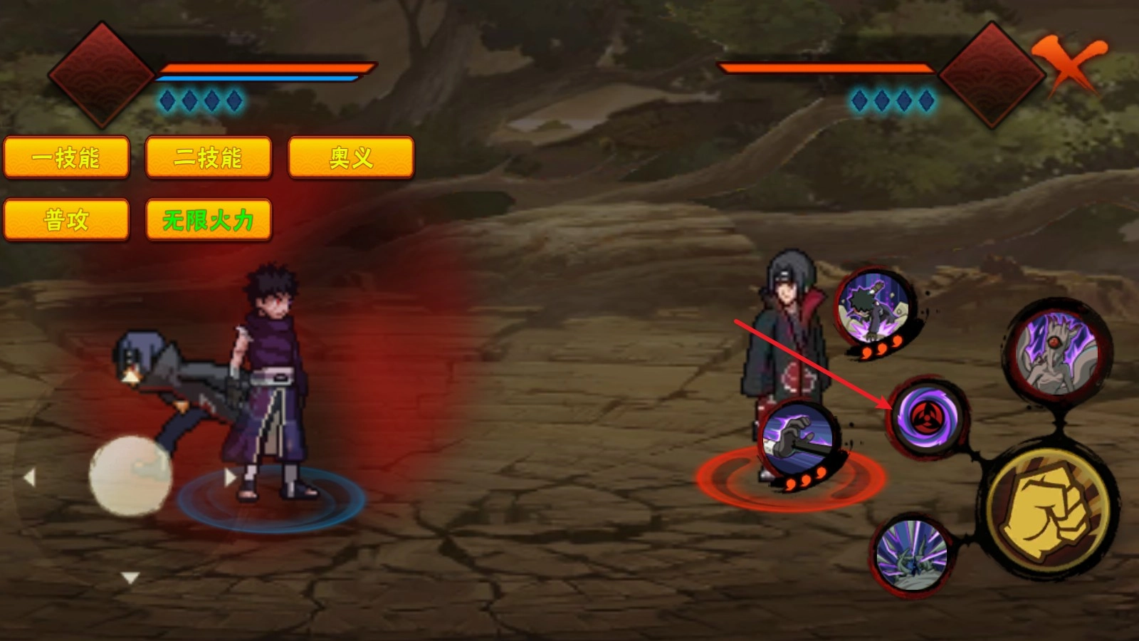 6、不同的忍者也有着特色的机制,例如带土的完美虚化,在对手攻击你的时候开启神威即可触发。
