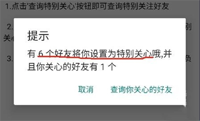 5、若你想查看自己设置为特别关心的好友是谁,只需点击“查询你关心的好友”按钮即可。