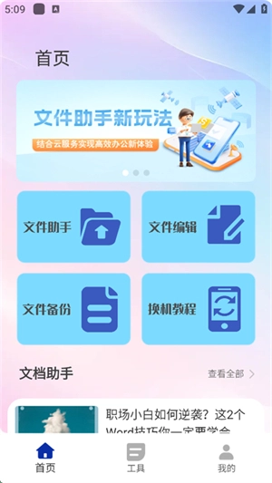 3、在首页中可以看到文件助手、文件编辑、文件备份等多个功能