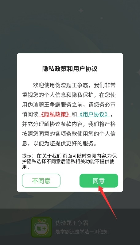 1首次使用时,需阅读平台的服务条款以及隐私政策,确认无误后,点击“同意”按钮方可进入应用。