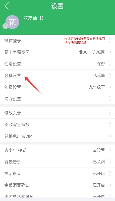 3、选择名称设置选项,输入需要变更的新名称后点击确认提交,即可完成改名操作。