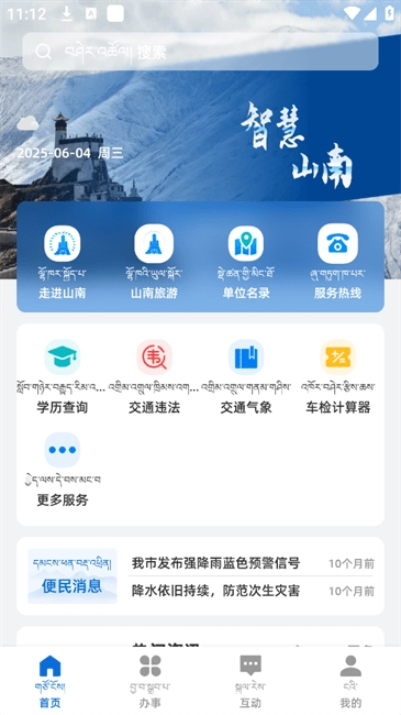 智慧山南App是一个一站式综合服务平台,为市民、农牧民群众以及干部职工提供便捷服务、政务办理、资讯获取、政民互动等各类服务。