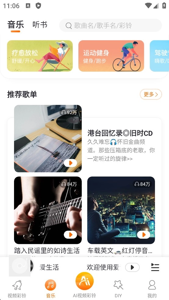 爱音乐彩铃拥有超150万首正版歌曲,流行、电子、民谣、爵士、戏曲、HipHop等各类风格一应俱全。随时随地想听就听,十分便捷,还具备本地播放器功能,支持在线与离线两种收听方式。此外,爱音乐彩铃为用户提供视频彩铃服务,明星片段、风景画面、热门BGM随心切换,更能自行DIY制作彩铃,玩法丰富趣味十足。同时也支持普通音频彩铃,让来电瞬间别具一格。