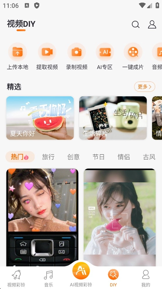 用户也能够上传视频来定制你喜欢的彩铃