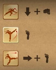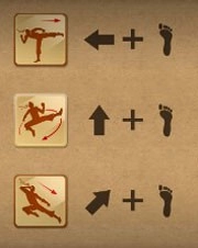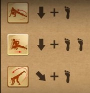 在战斗中角色有8个移动方向,↑向上 ↓向下 ←向后 →向前 ↖后翻(双击向后也可以翻滚) ↗前翻 ↘前滚 ↙后滚。