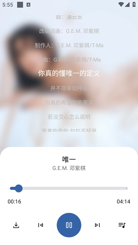 4.点击歌曲也能在线播放,右滑显示歌词