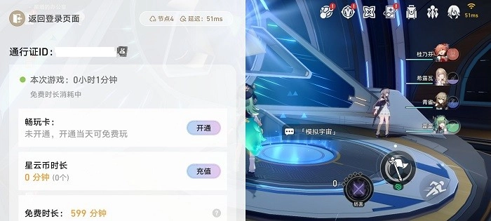 4. 进入游戏后,点击米兔图标,即可查看详细的剩余免费时间,也能进行充值。游戏内游玩一切正常。