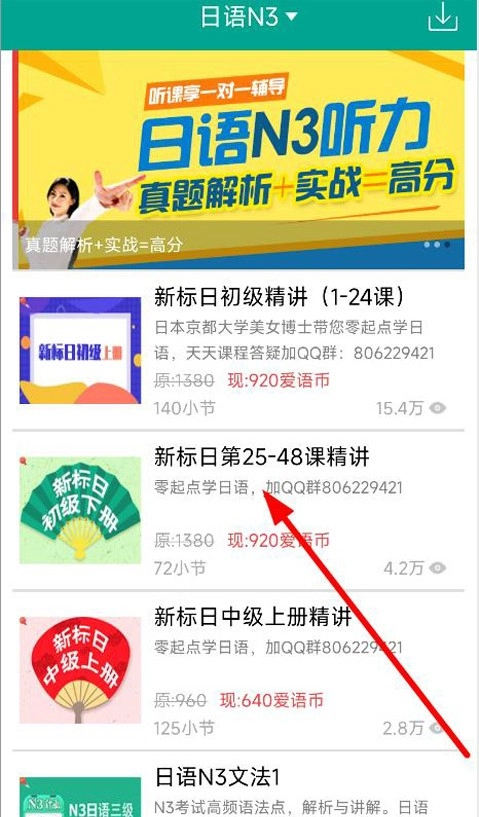 3、微课页面中有新标初级日语精讲、新标日语中级精讲等课程,用户可自行选择学习内容;
