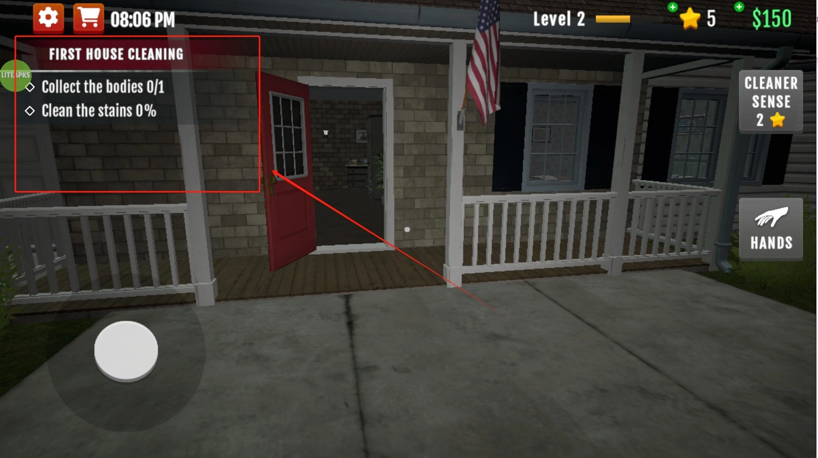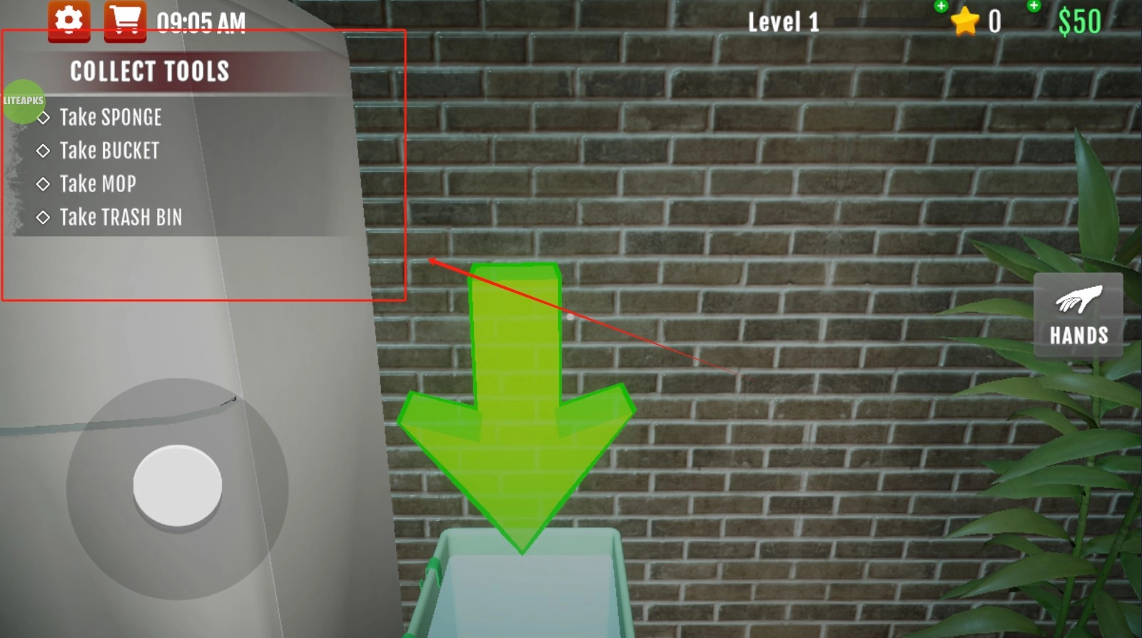 4、右手边的“hands”是玩家完成任务时能够选择的工具,在不同区域进行打扫需挑选合适的工具。