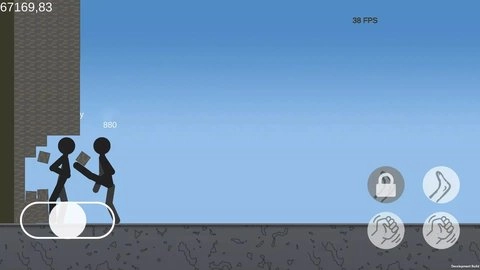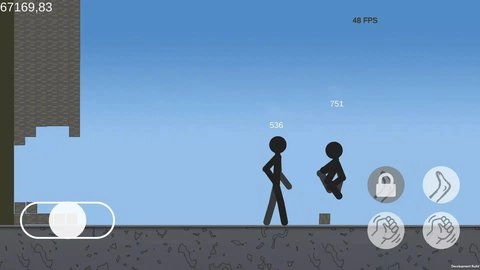 2、通过虚拟摇杆和按键操作,玩家可以控制火柴人进行移动、攻击和防御。