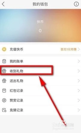 在我的钱包界面下面,有个“我收到的礼物”,点击我收到的礼物,如下图所示。