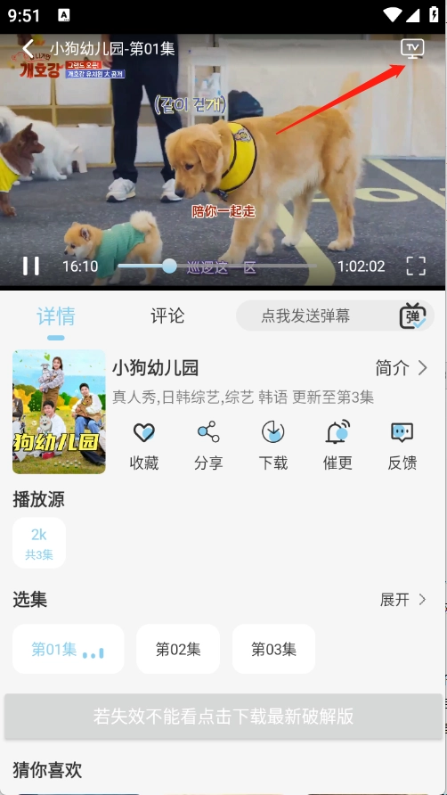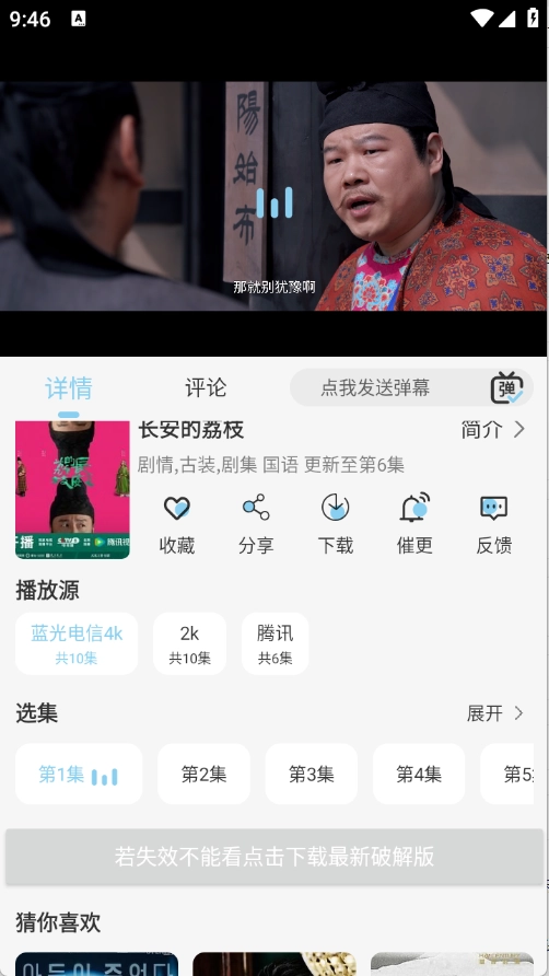 3.点开想看的影片之后进入播放页面,支持选择集数、切换播放源等