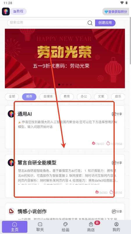 4、我们还可以进入绘画页面,这里可以进行AI绘画的功能使用;