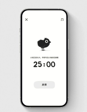 4、一旦用户中断专注,成长将会失败,用户也会失去这只小鸡