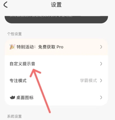 2、在设置列表中,点击下面的【自定义提示音】选项