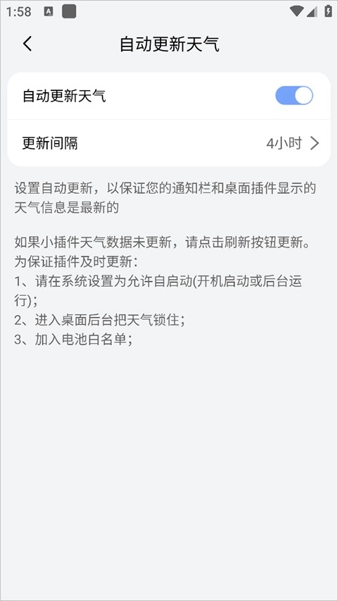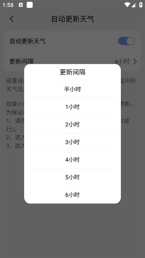 3、打开自动更新按钮,并且设置自己想要的时间间隔