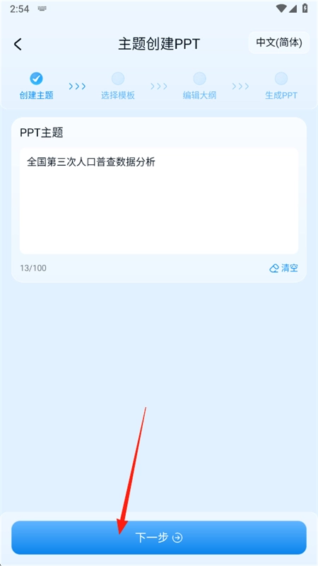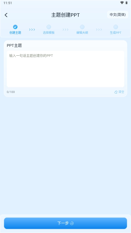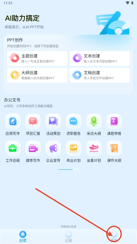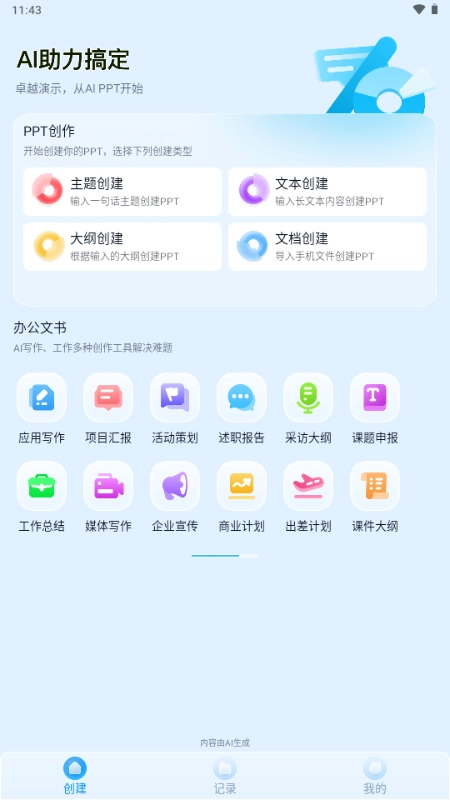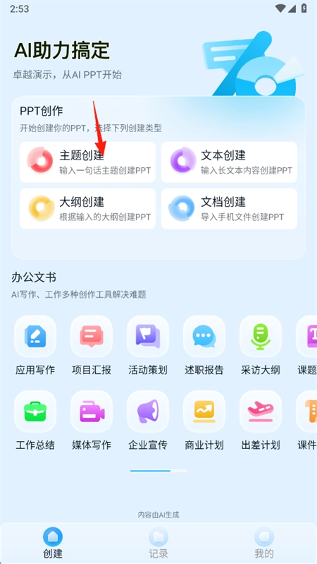 1、输入主题、文本或上传文档,AI将自动分析并生成相应的PPT结构。