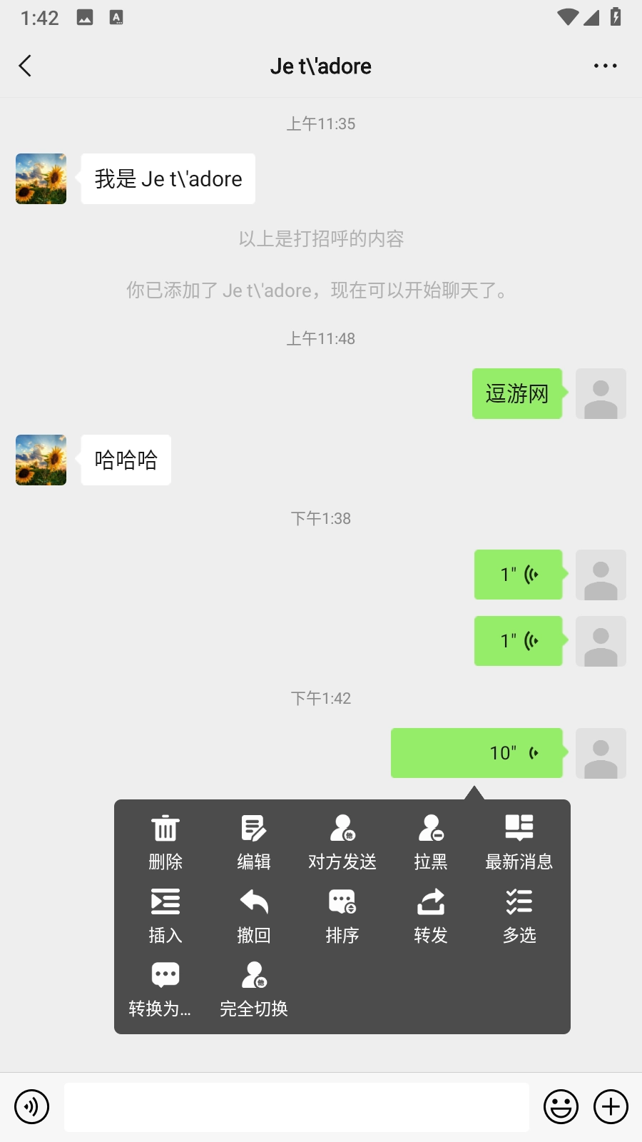 4.点击语音消息,可以看到更多操作