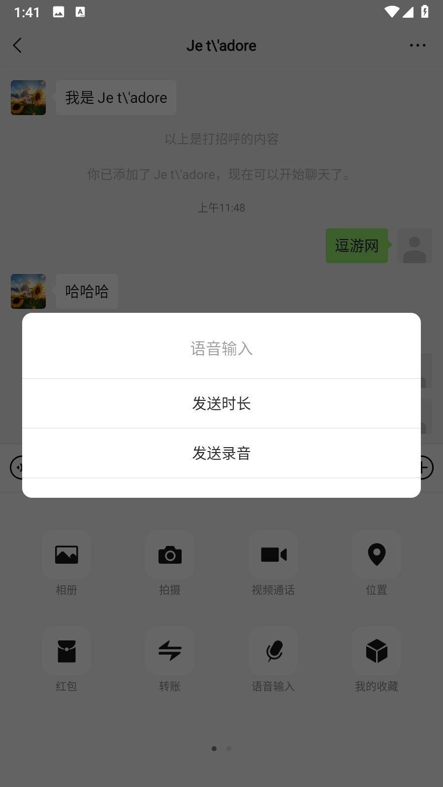 3.点击【语音输入】按钮,选择【发送时长】,如10分钟