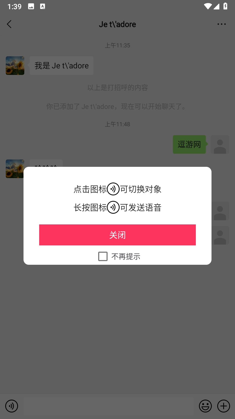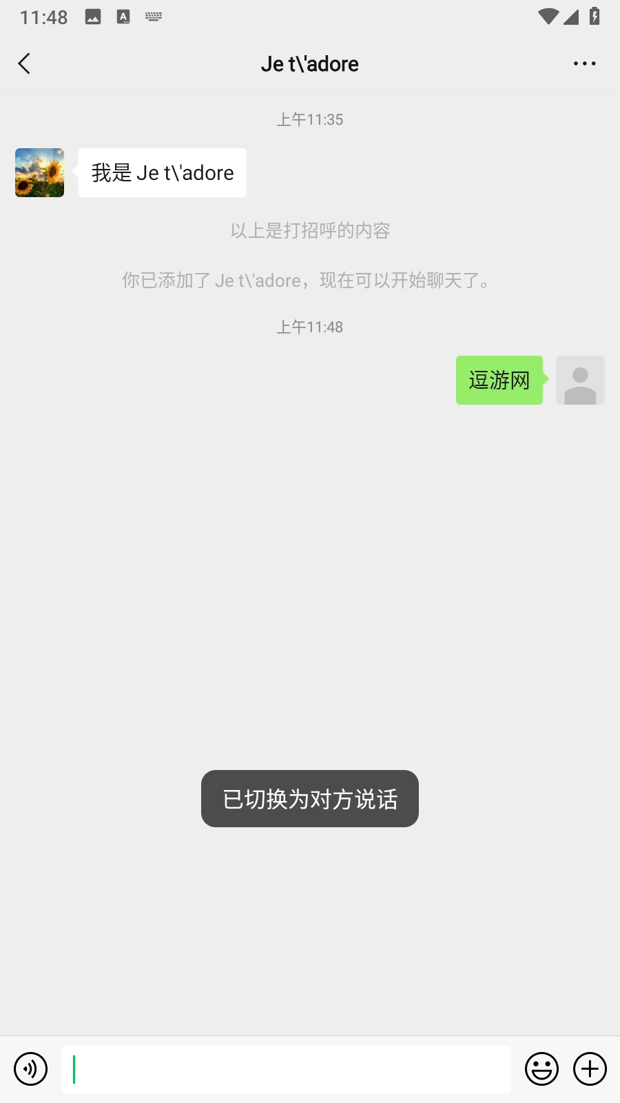 4.点击语音按钮,输入文字,对方消息即可发送