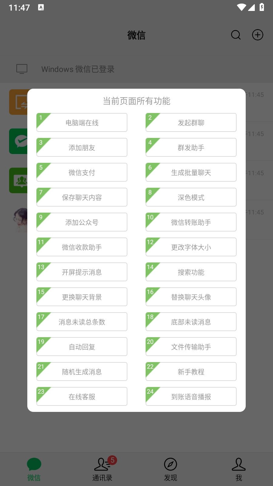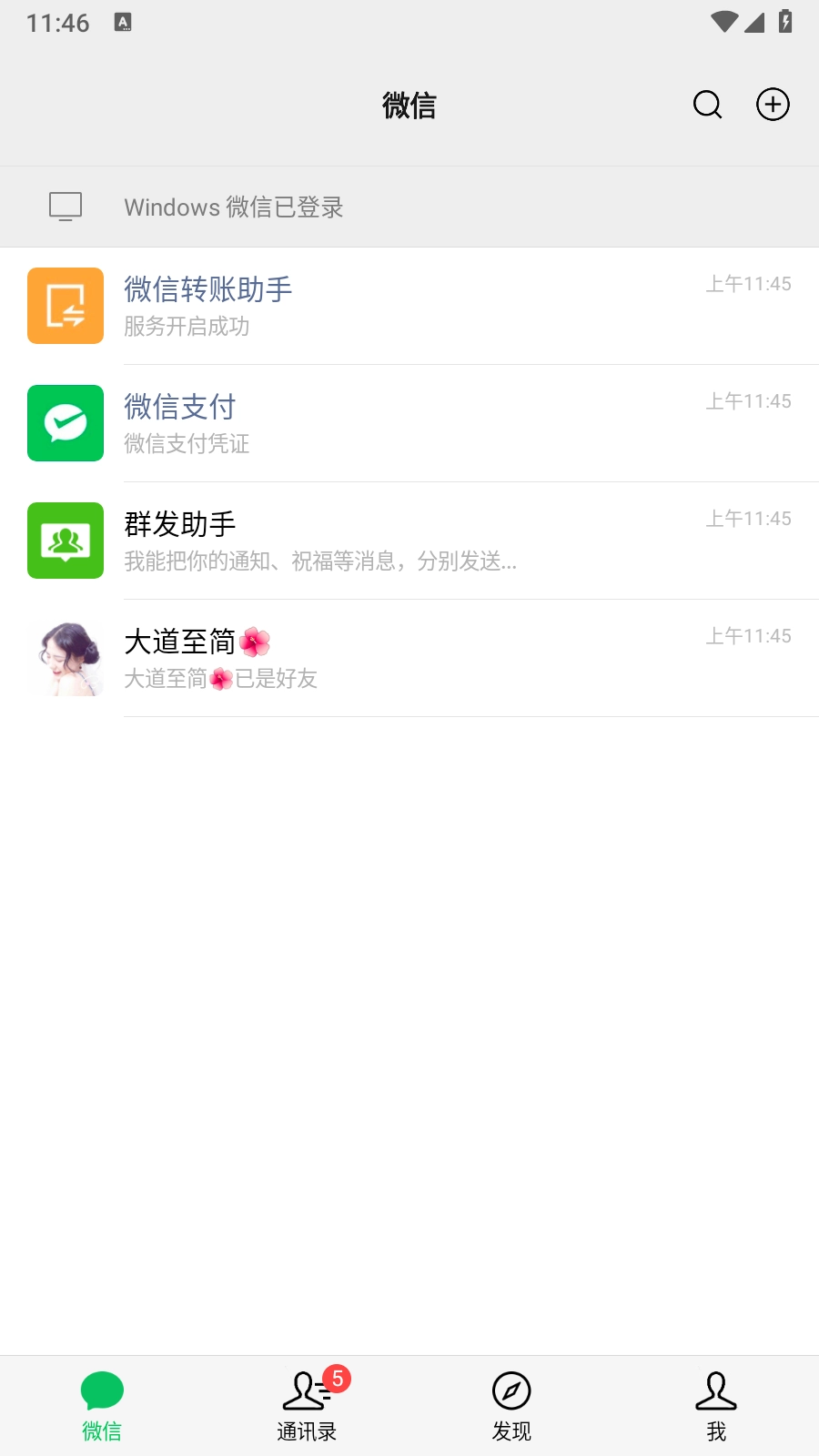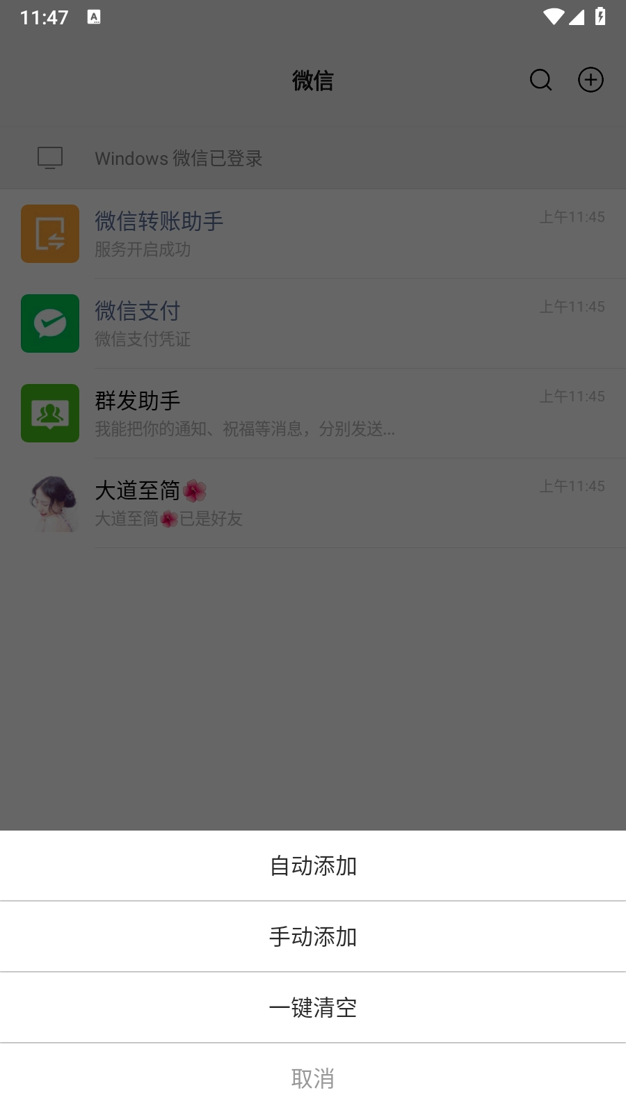 3.点击顶部【微信】二字,在跳出的弹窗页面中,点击【添加好友】