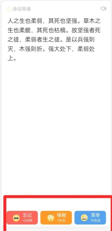 2、学习过程里,下面的三个按键,【忘记】代表不会,【模糊】代表有印象,【简单】代表已经记住,以此进行快速刷题