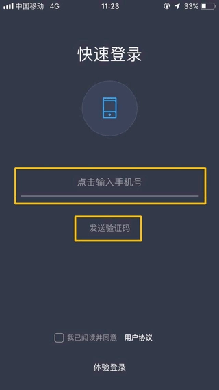 1、开启操作,凭借手机号与验证码完成注册登录。