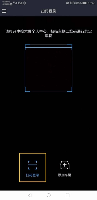 2、打开AI风行【扫一扫】,将扫描端口对准车机个人中心二维码,扫描成功即成功登录车机