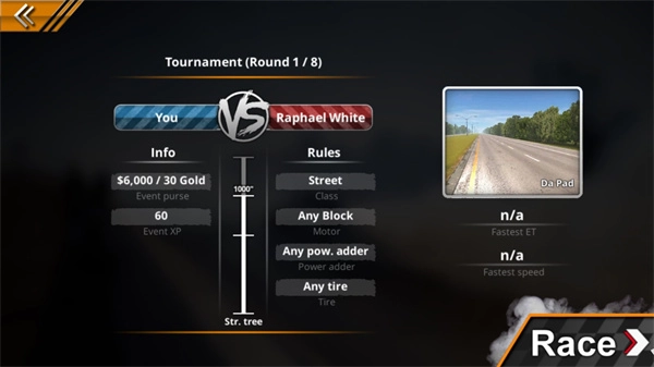 5、进入之后还要选择一个地图进行挑战,选择完点击race;