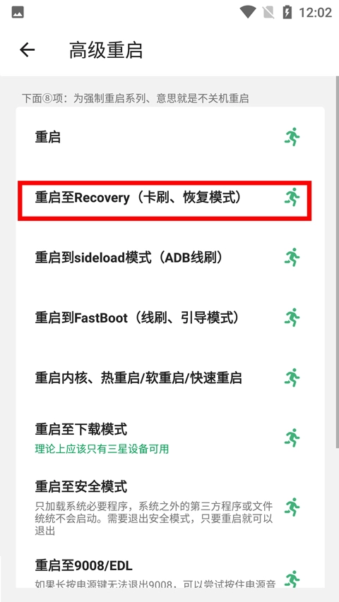 3、直接选择重启至recovery即可;